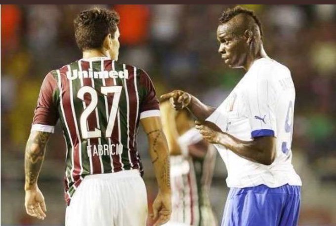 Durante em 2014, na derrota para a Seleção da Itália, Balotelli chegou a PEDIR CAMISA do Fluminense com nossos jogadores. Abaixo tem ele com a camisa do Fluzão.